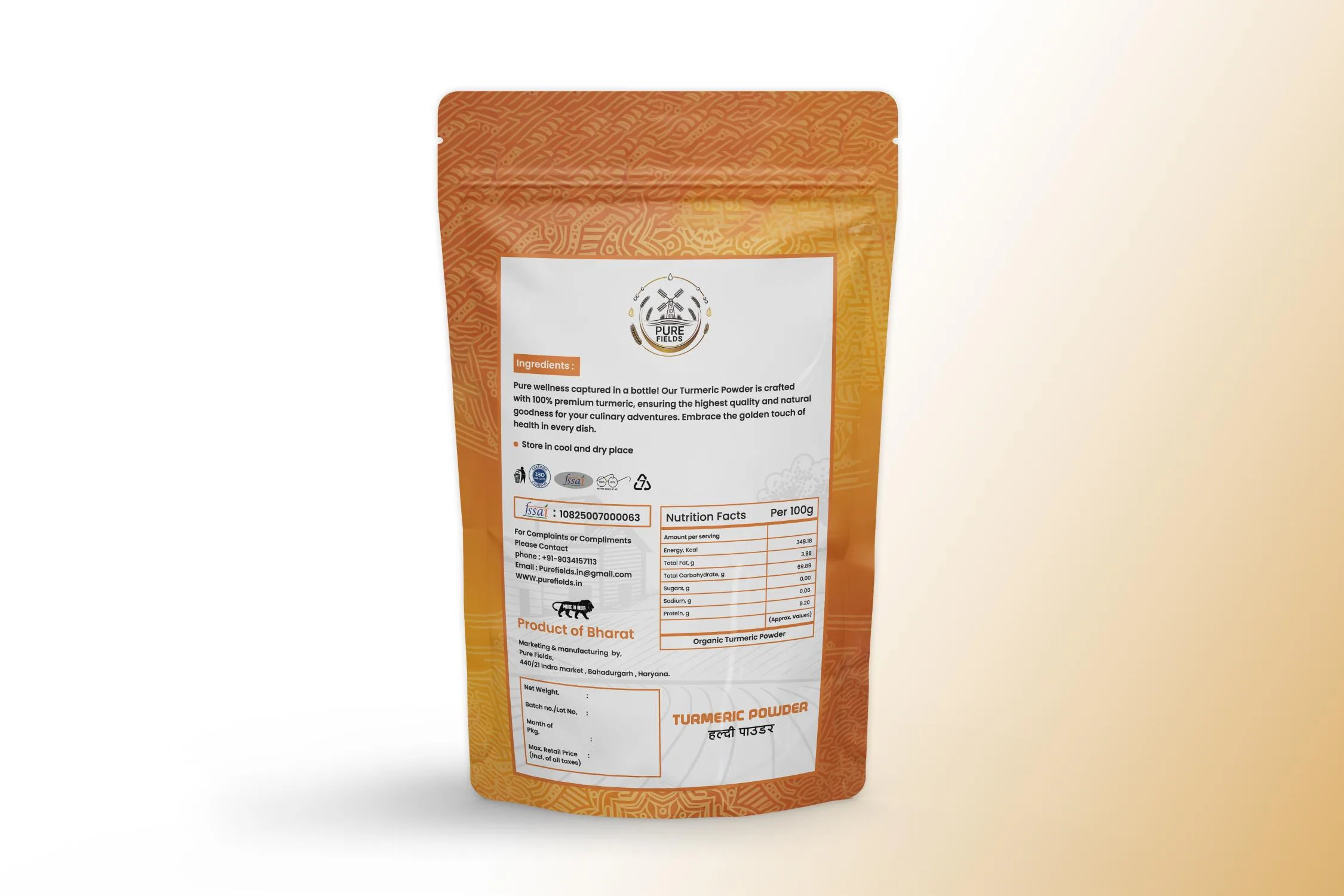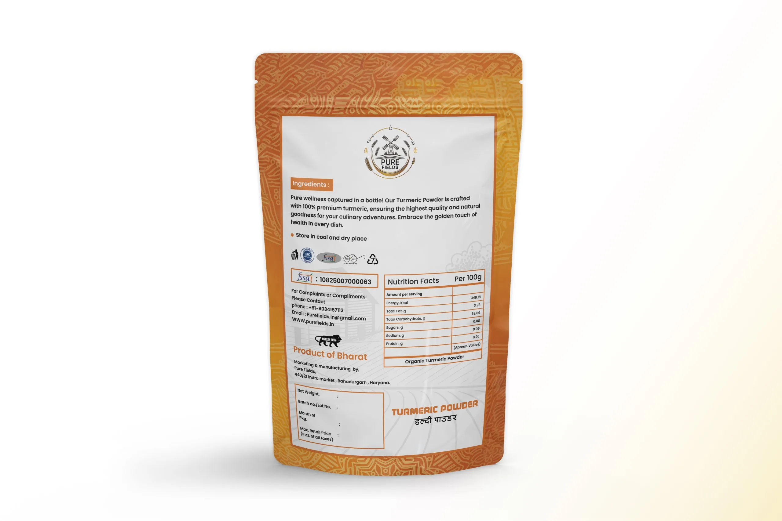 Pure Fields Turmeric Powder – 100% Natural & High Curcumin (Haldi)
